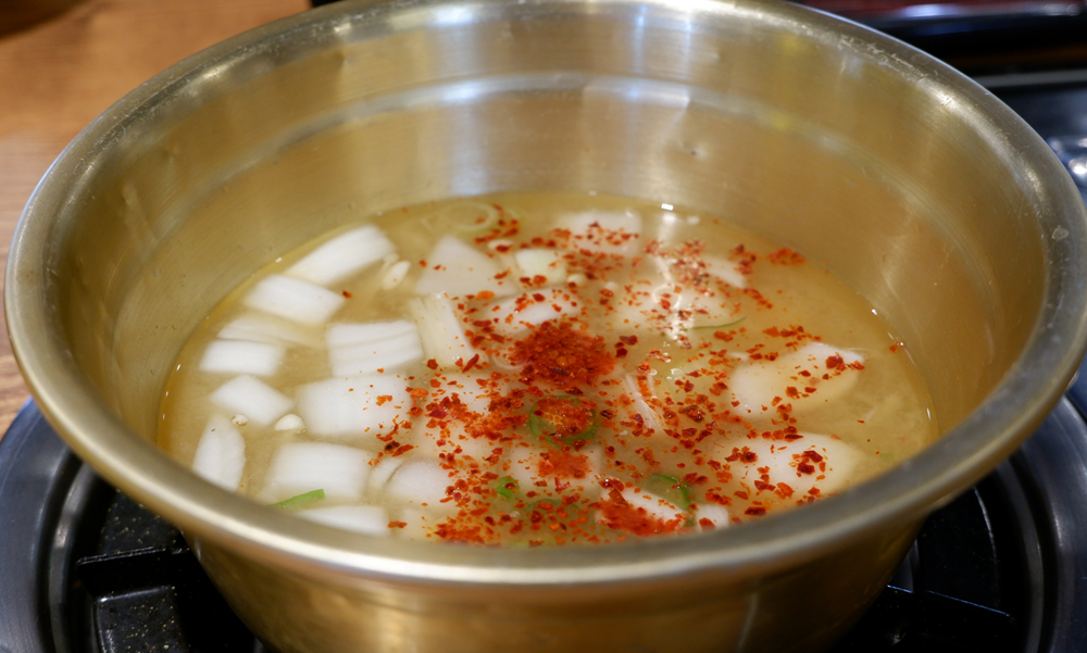 뭔가 국 같은 것이 나오는데... 된장찌개랍니다.
