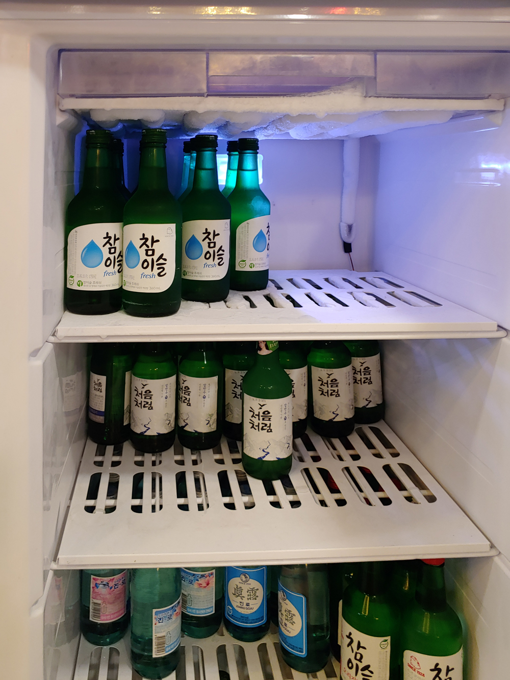 차갑게 냉장이 잘 된 소주는 우리 애주가들에겐 아주 즐거운 만남이죠.