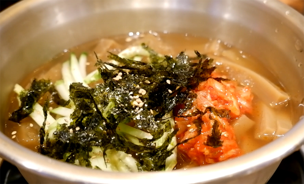 시원하게 한 국자씩 덜어 먹습니다.