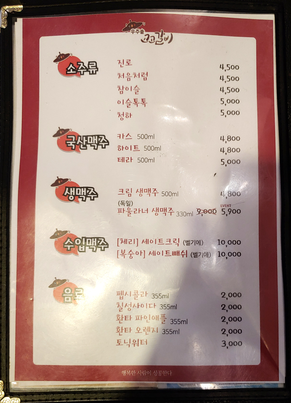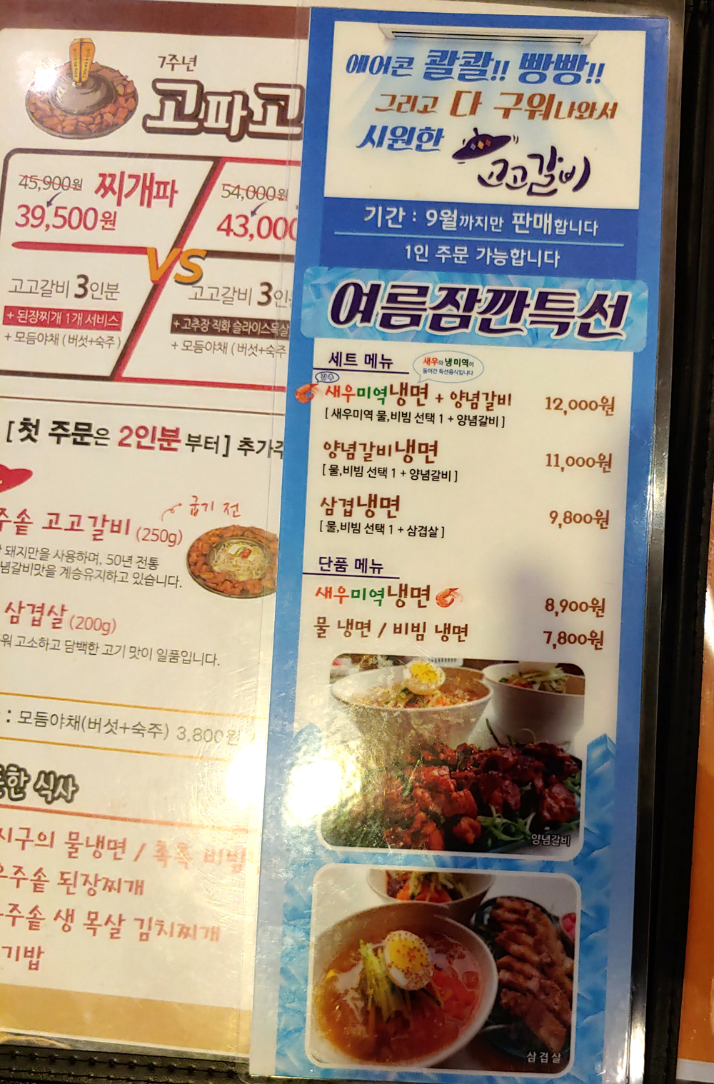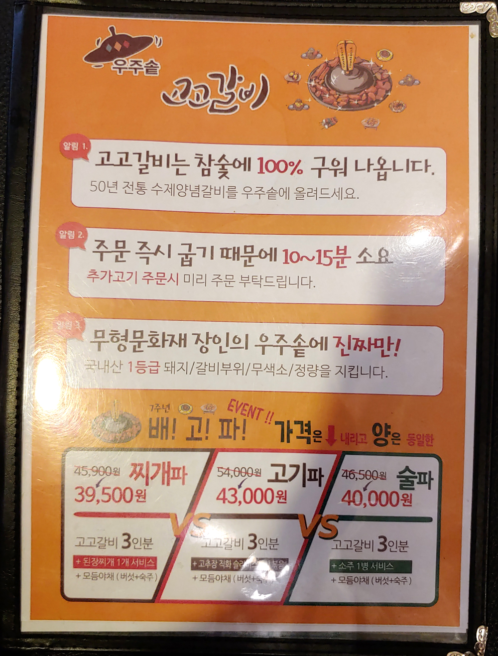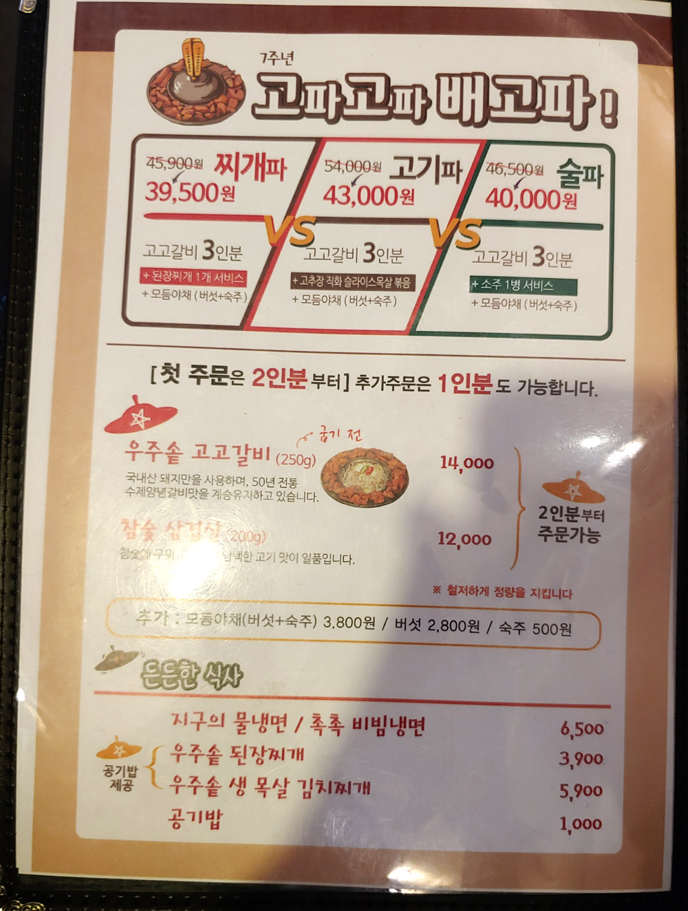 고고갈비 찌개파 메뉴와 G7와인을 마셨습니다.