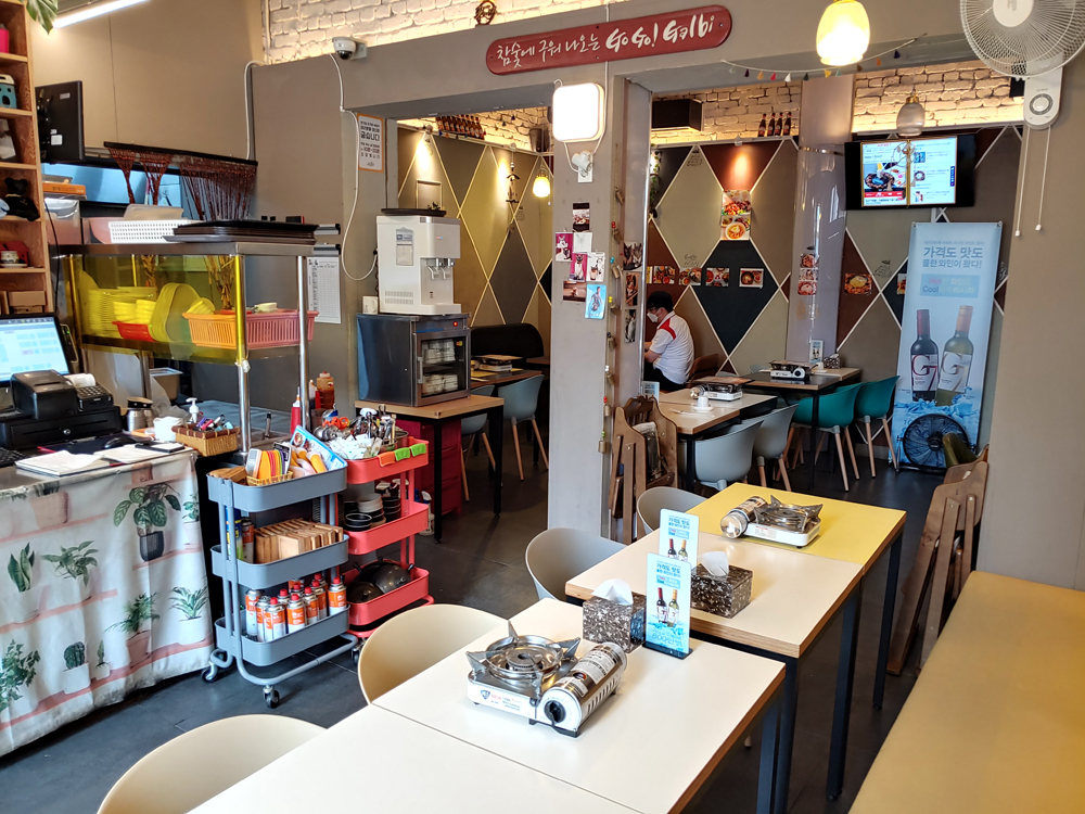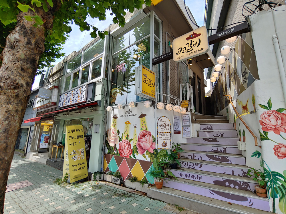 홍대 상권 상수역 인근의 재밌는 갈비구이집 고고갈비입니다.