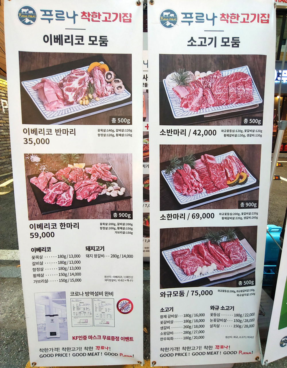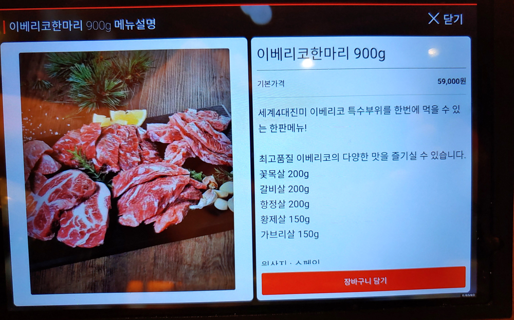 아래는 고기 메뉴이며 다른 메뉴도 있습니다.