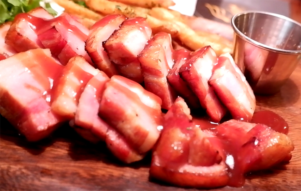 1차로 먹은 안주 통삼겹살로스트입니다.