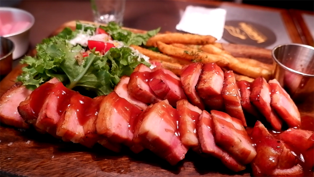 1차로 먹은 안주 통삼겹살로스트입니다.
