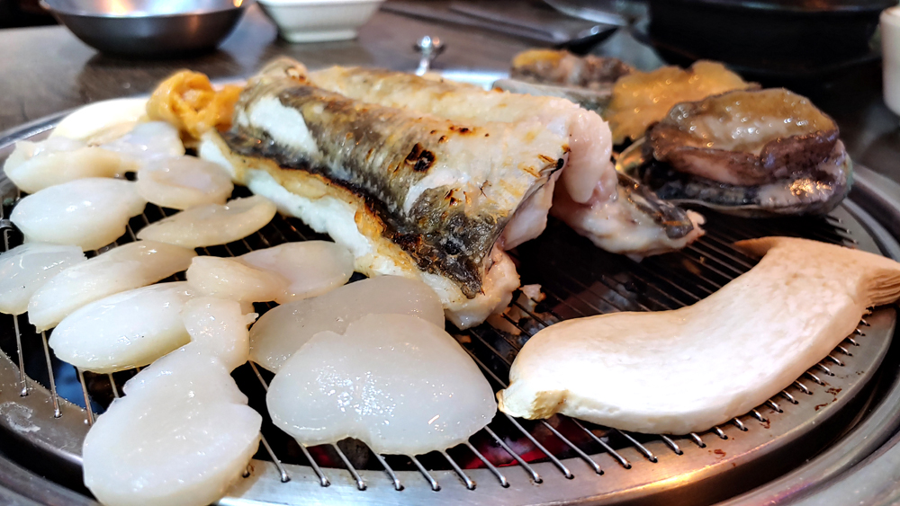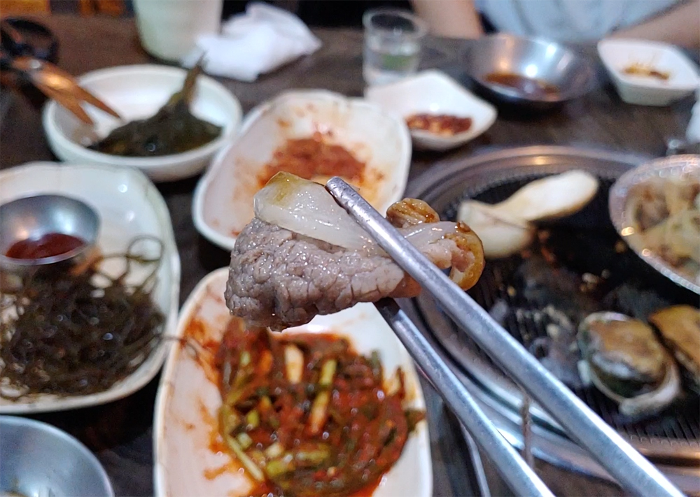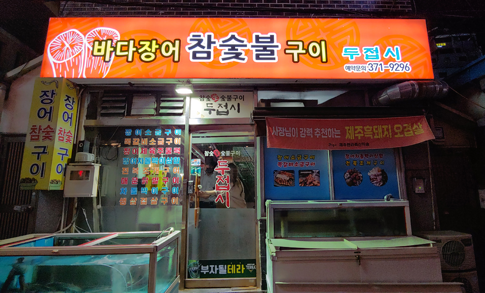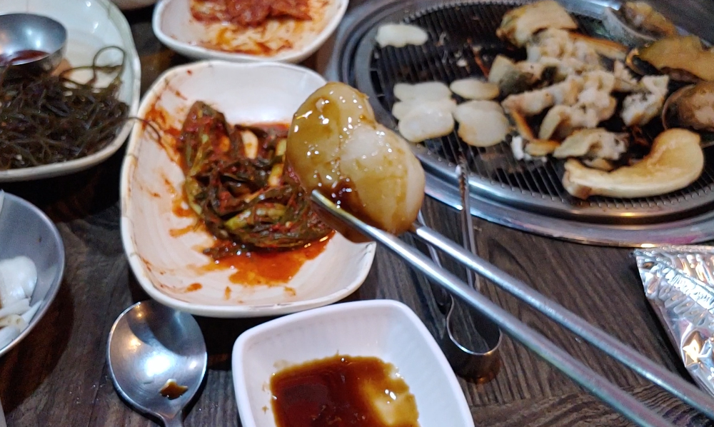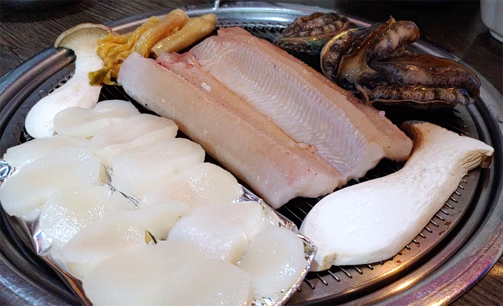 광주 출장가서 상무지구에서 하루 잔 날 저녁으로 먹은 장어차돌박이 삼합입니다.