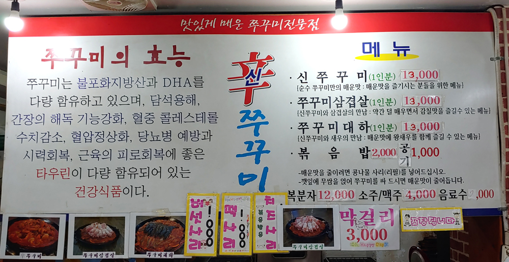광주광역시 광산구 첨단지구에 있는 쭈꾸미 전문 식당 신쭈꾸미입니다.