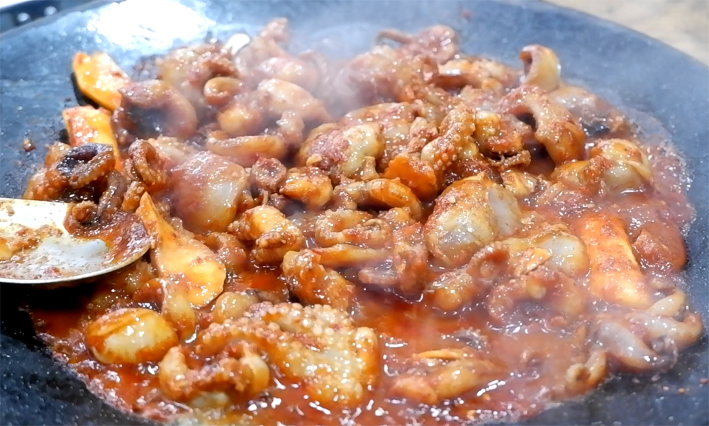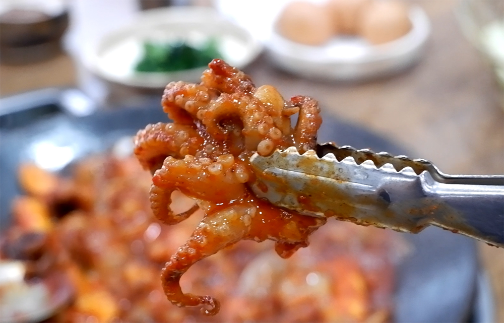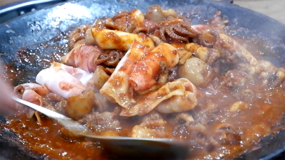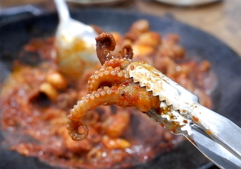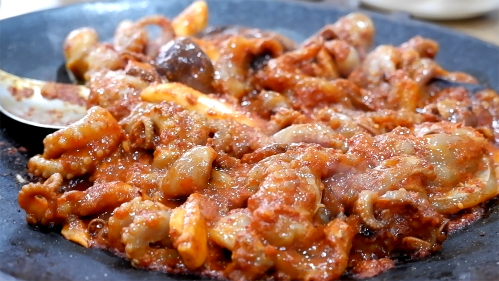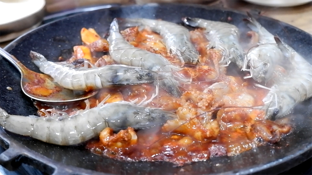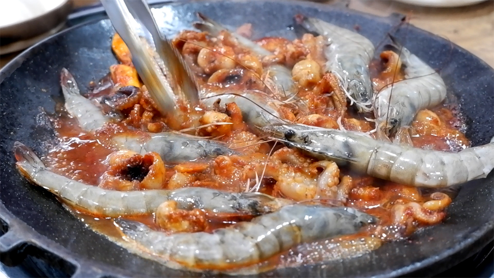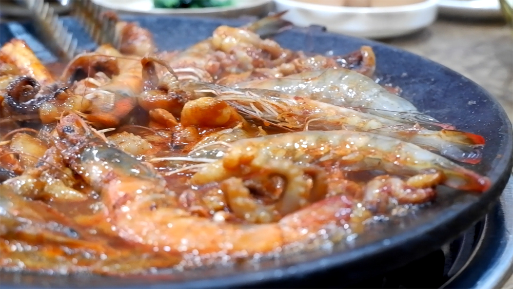 쭈꾸미와 새우, 삼겹살을 조합한 맵고 맛있는 세 가지 메뉴가 인기입니다.