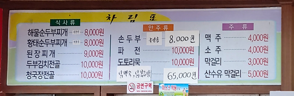 하얗고 부드럽고 고소한 손두부와 해물맛이 조금 나는 순두부의 맛이 좋습니다.