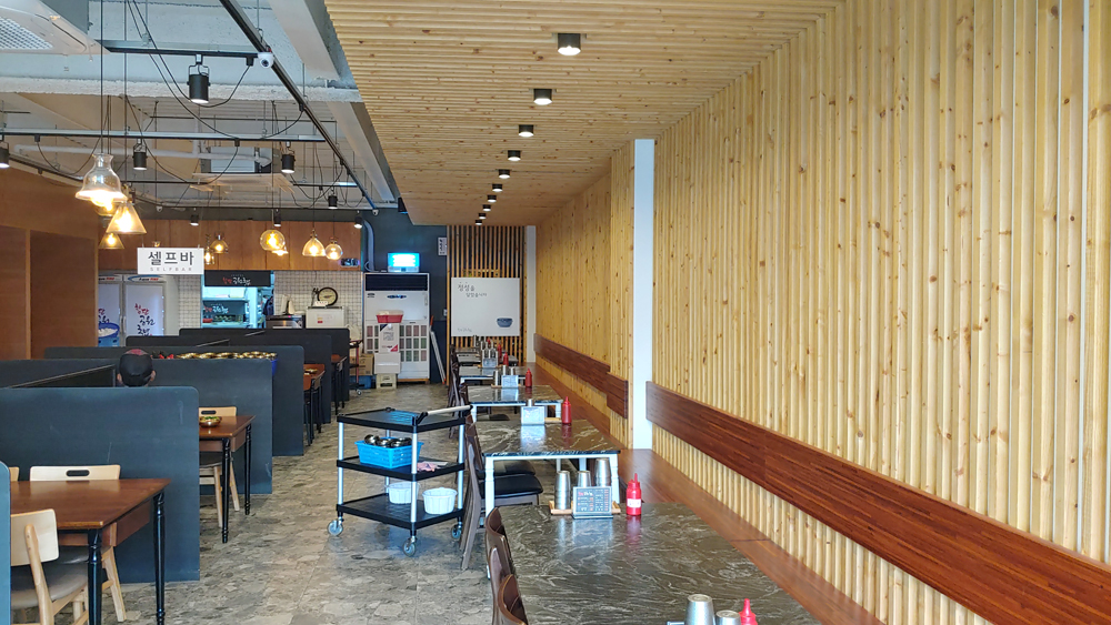 외관과 같이 실내도 깔끔하고 세련된 인테리어로 깨끗하고 밝은 분위기의 국밥집입니다.