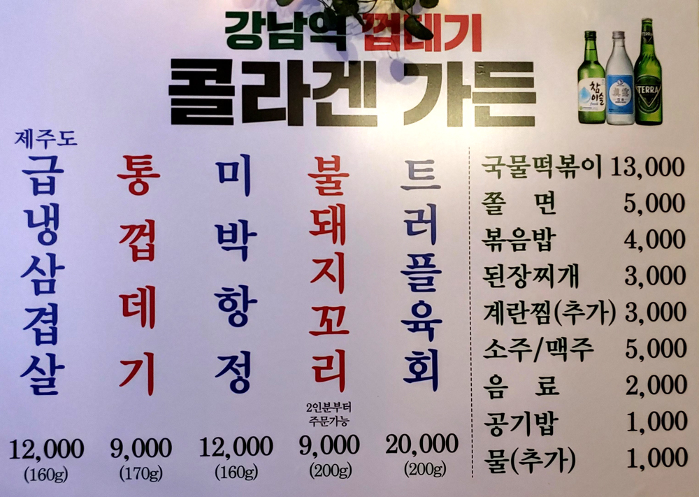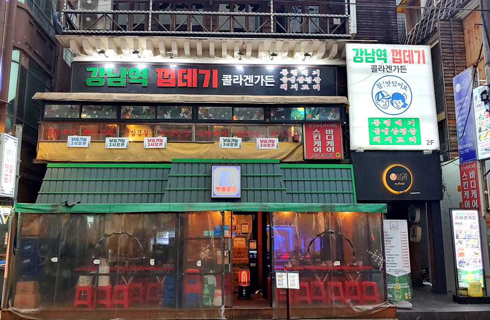 강남역 사거리 부근에 있는 고기술집 강남역껍데기콜라겐가든입니다.