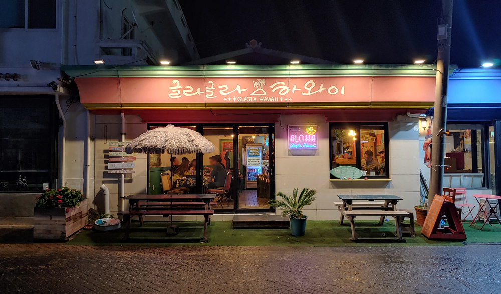 제주도 서귀포시 모슬포항에 자리한 분위기 좋은 하와이 갬성 맥주집 글라글라하와이입니다.