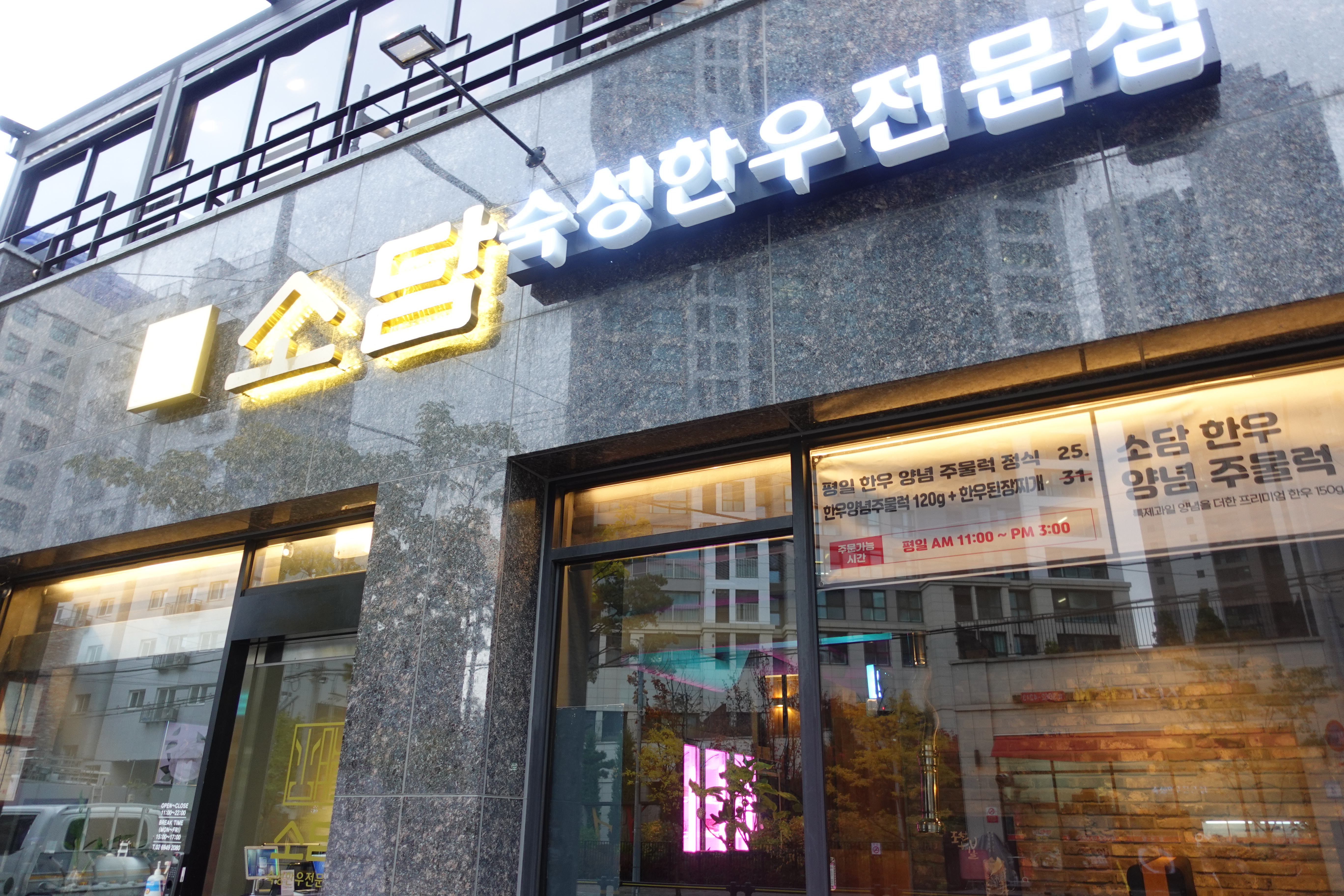 두툼한 스테이크식 등심구이가 맛있는 소담 숙성한우전문점입니다.
