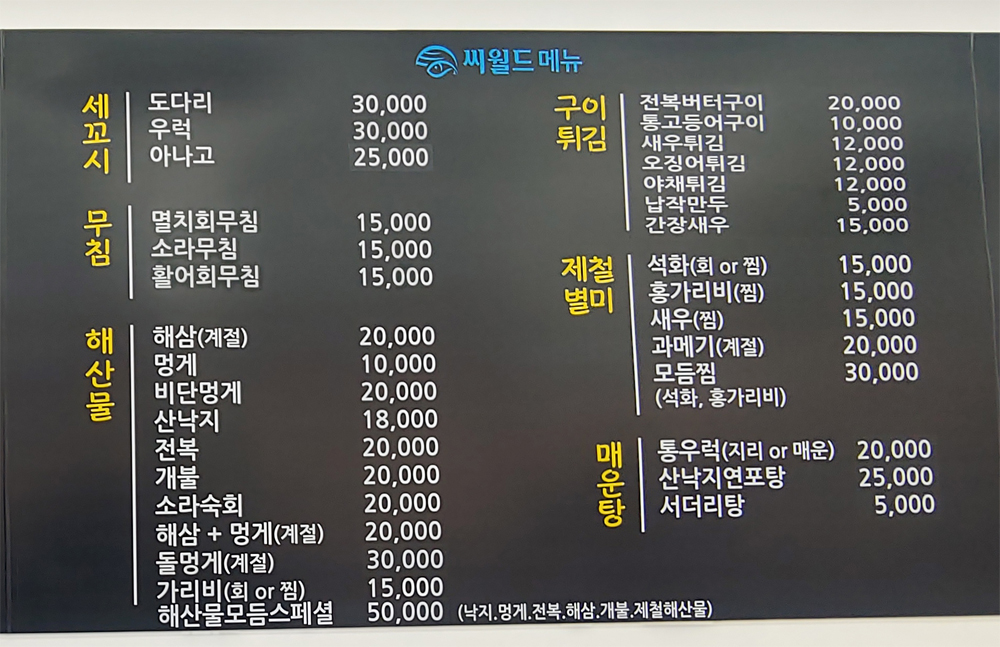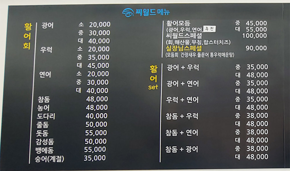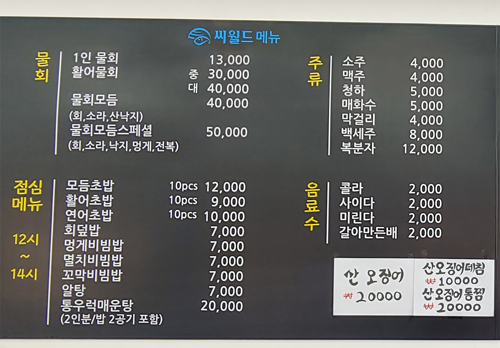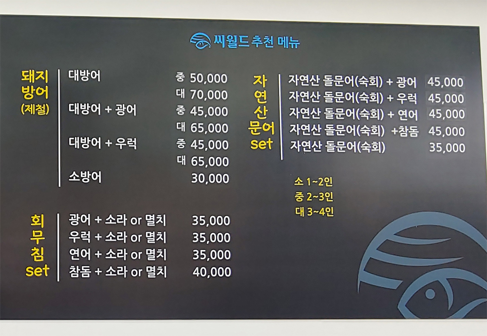 다양한 횟감과 해산물이 준비되어 있어 누구라도 원하는 메뉴를 즐길 수가 있습니다.