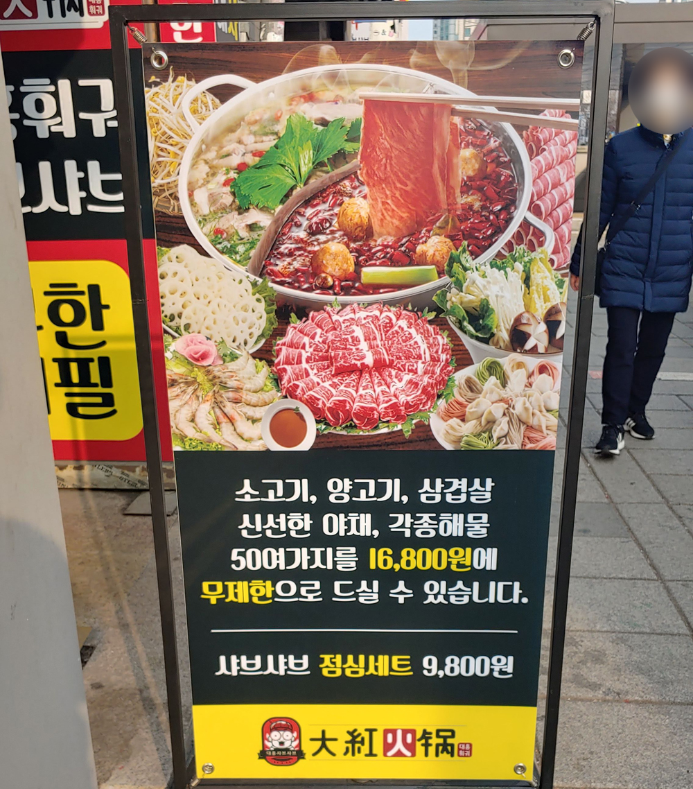동대문역 2번 출구에서 가까운 훠궈 무한리필 맛집 대홍 샤브샤브입니다.