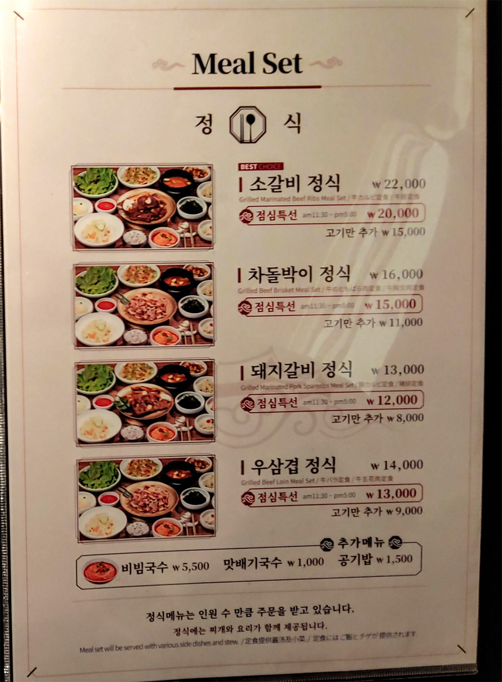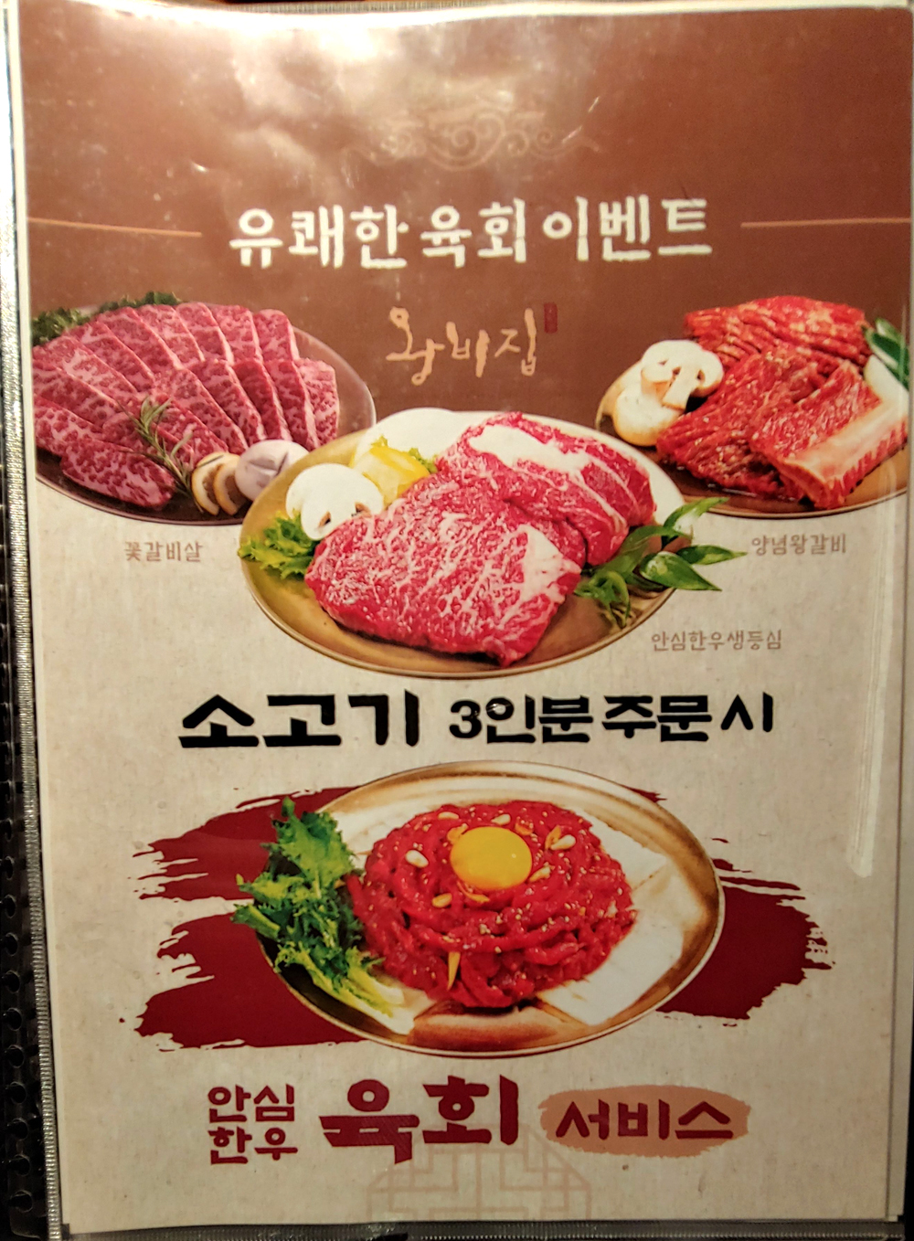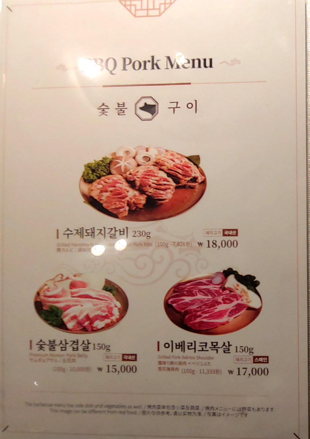 명동역 근처에 자리한 왕비집 명동3호점의 돼지고기 메뉴입니다.