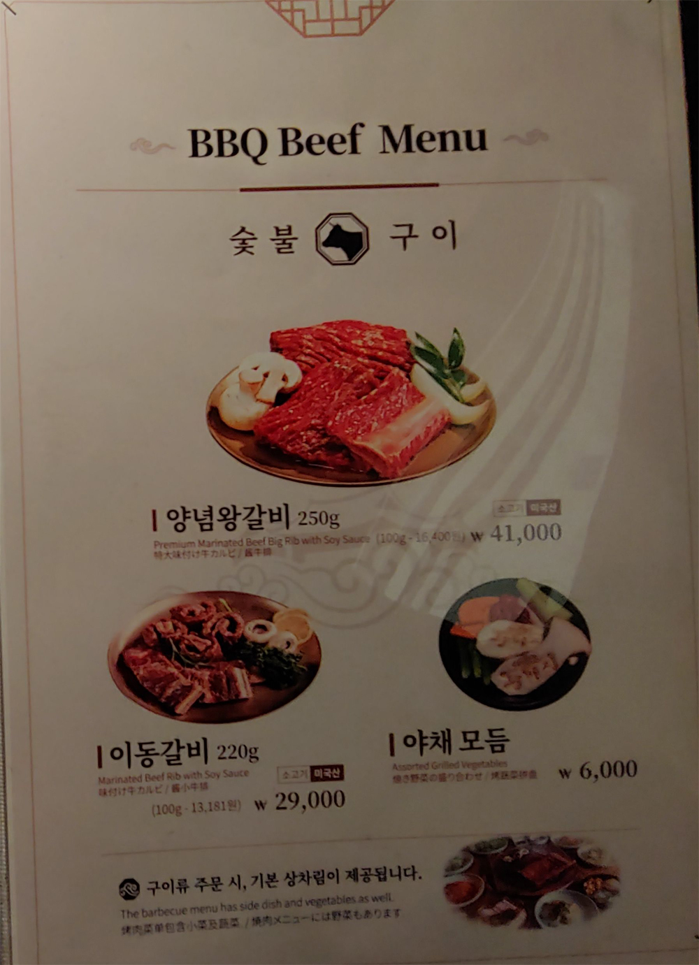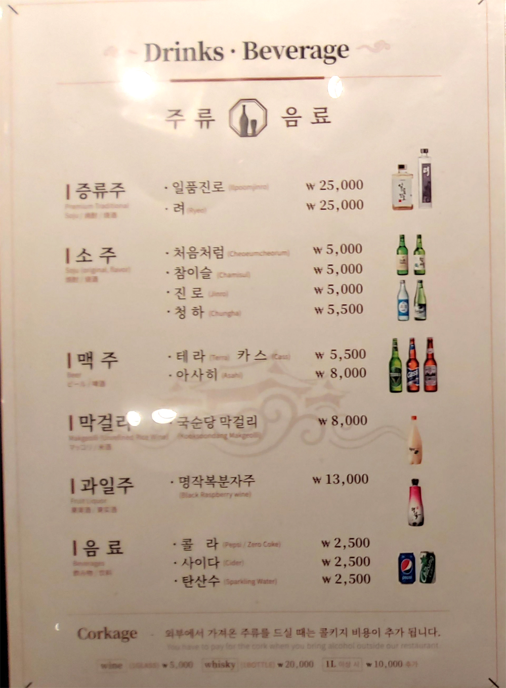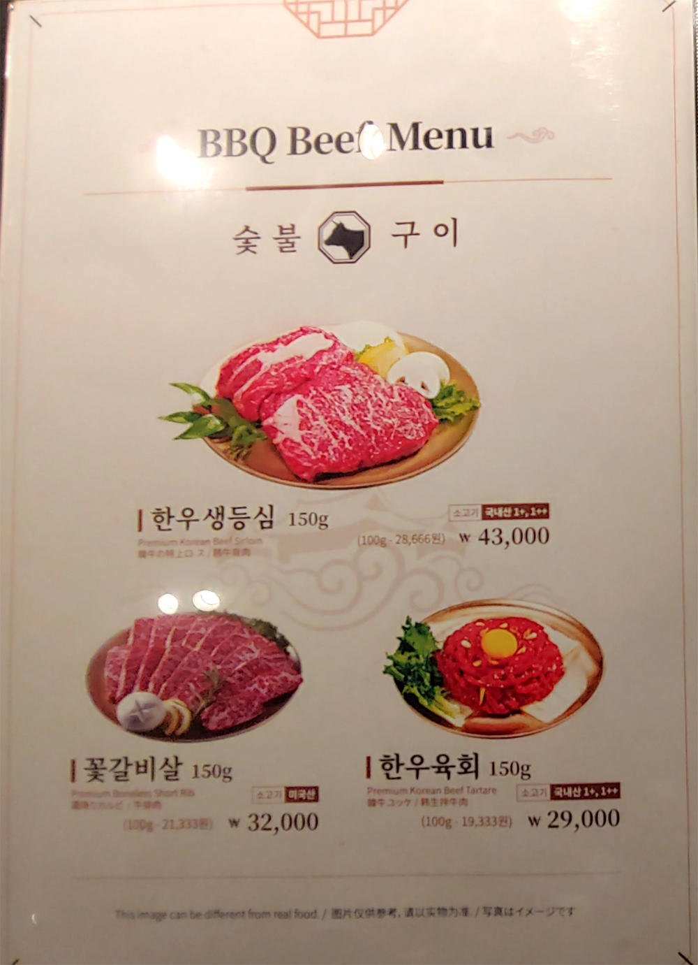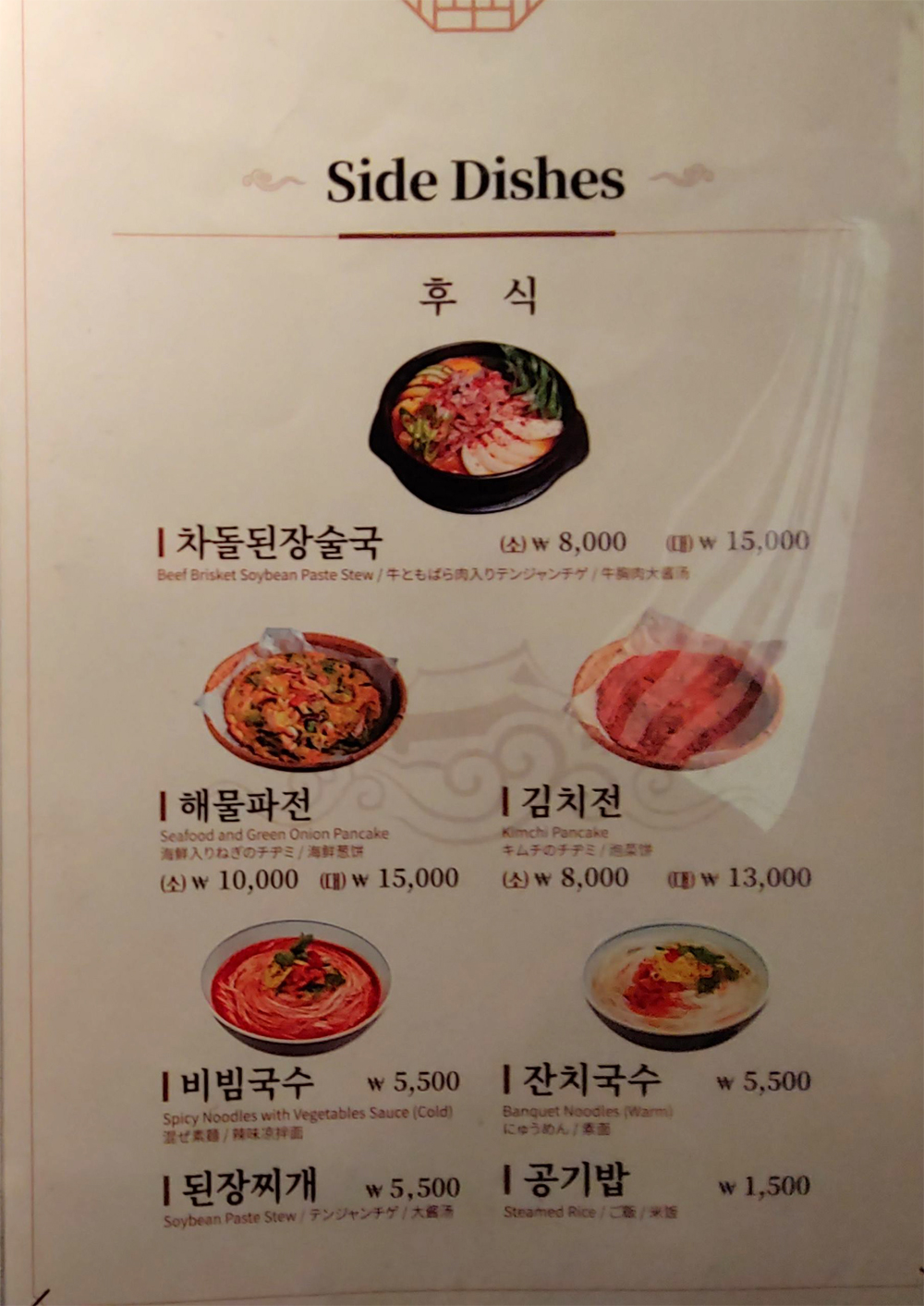 명동역 근처에 자리한 왕비집 명동3호점의 돼지고기 메뉴입니다.