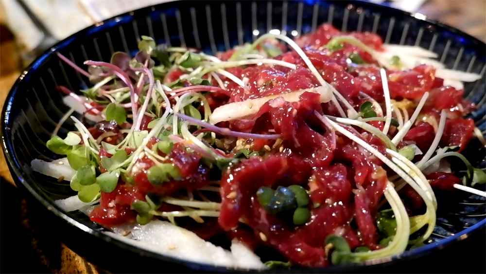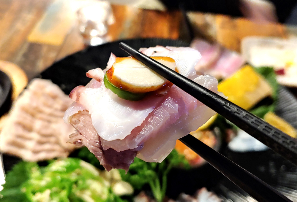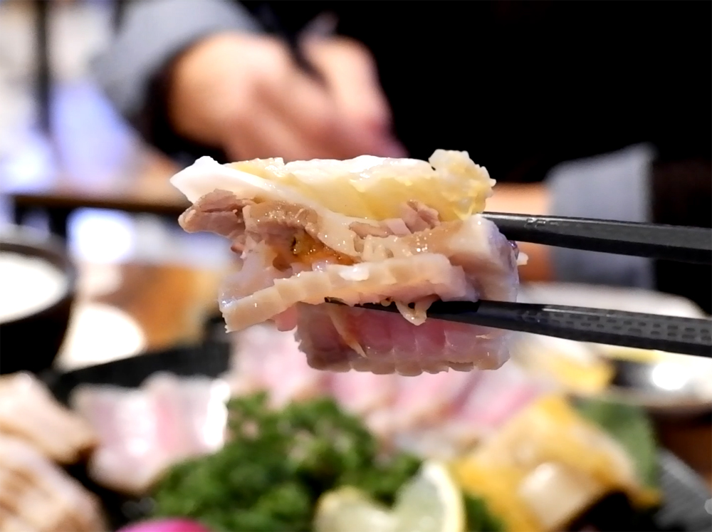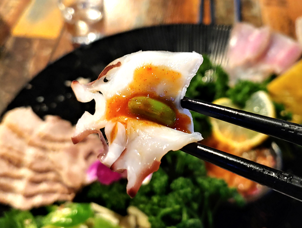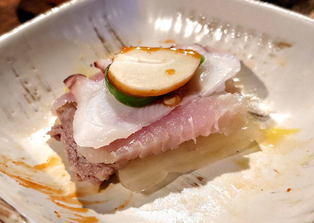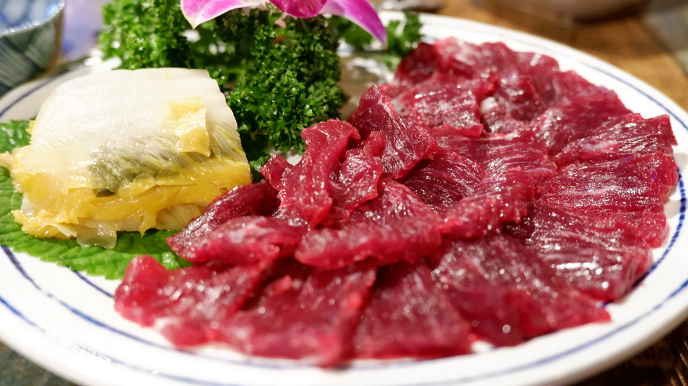 문어요리 전문점 문어랑 상록점의 홍어사합, 육회, 뭉티기, 아귀포입니다.