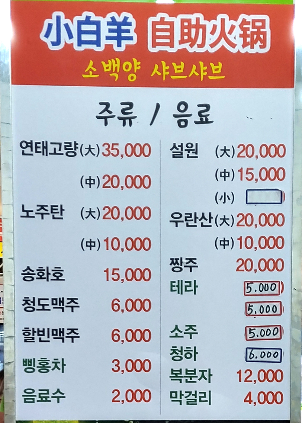 중국 현지 분위기의 샤브샤브 식당입니다. 1인당 18,000원입니다.