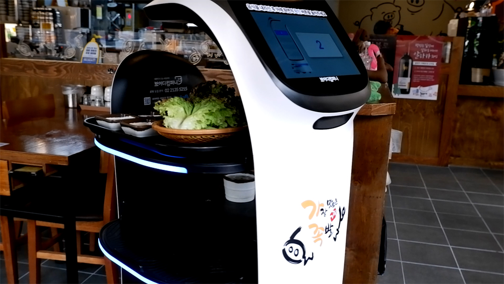 QR코드를 통하여 스마트폰으로 주문하는 점과 로봇이 배달을 해준다는 점이 재밌네요.