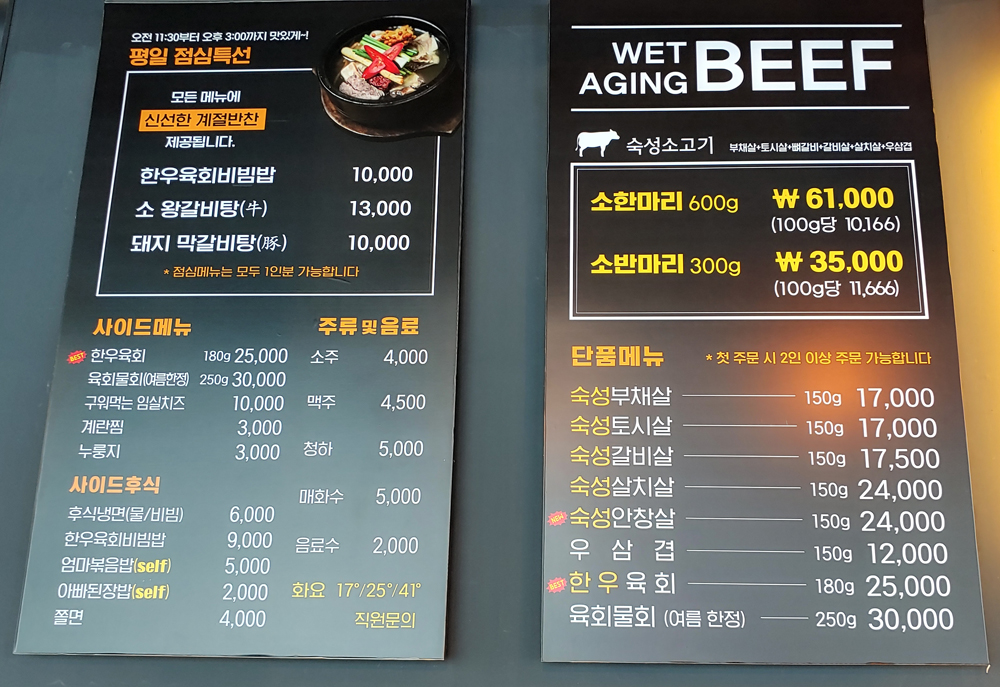 아산시 풍기동에 새로 생긴 숙성고기 전문점 한마음정육식당입니다.