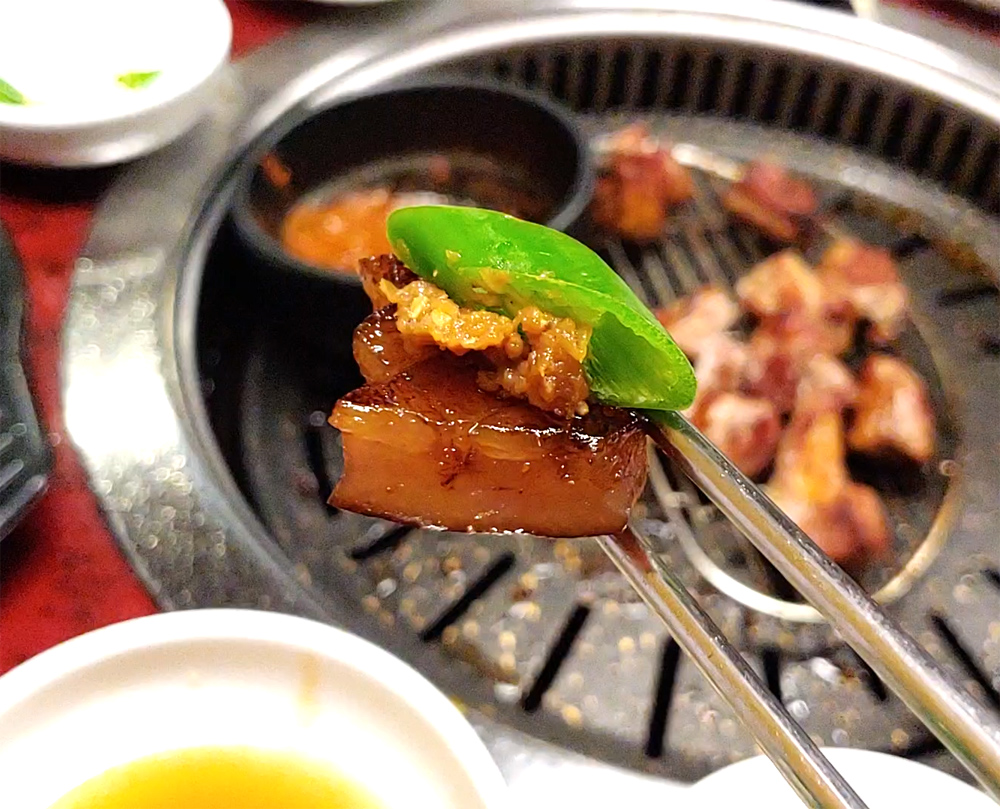 연하고 부드러운 목살에 달달하고 간간한 껍데기의 맛이 좋습니다.