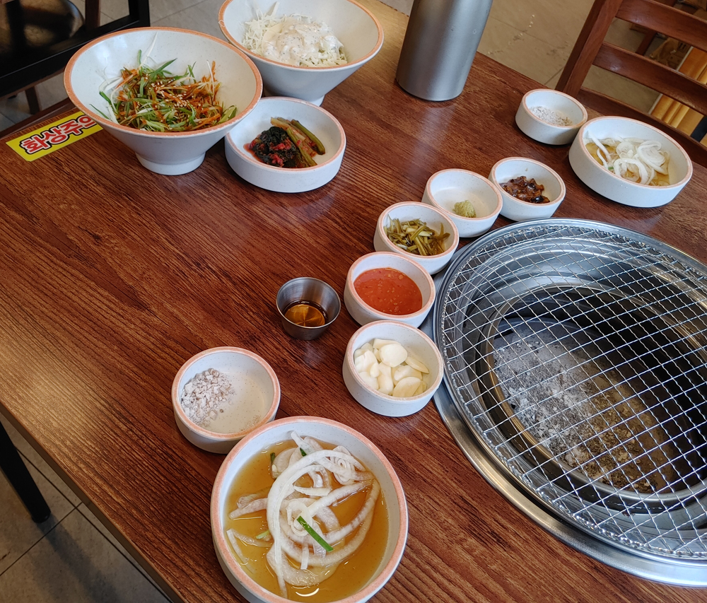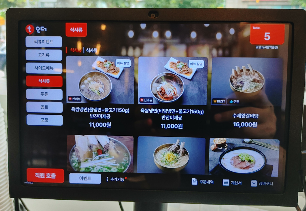 함께 먹은 메뉴는 된장찌개, 계란찜, 물냉면입니다.