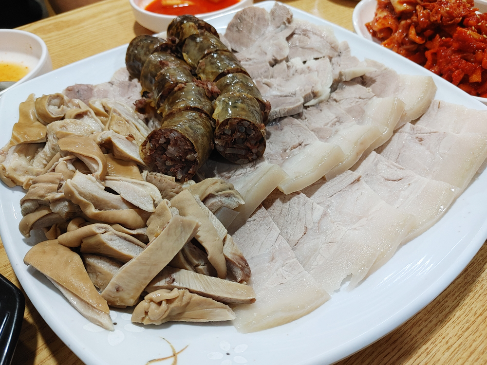낙원동에 있는 부산식 돼지국밥 그리고 수육 전문 식당 돈맛꿀의 모둠 수육과 돼지국밥입니다.