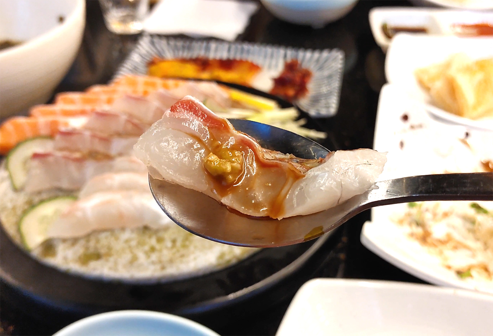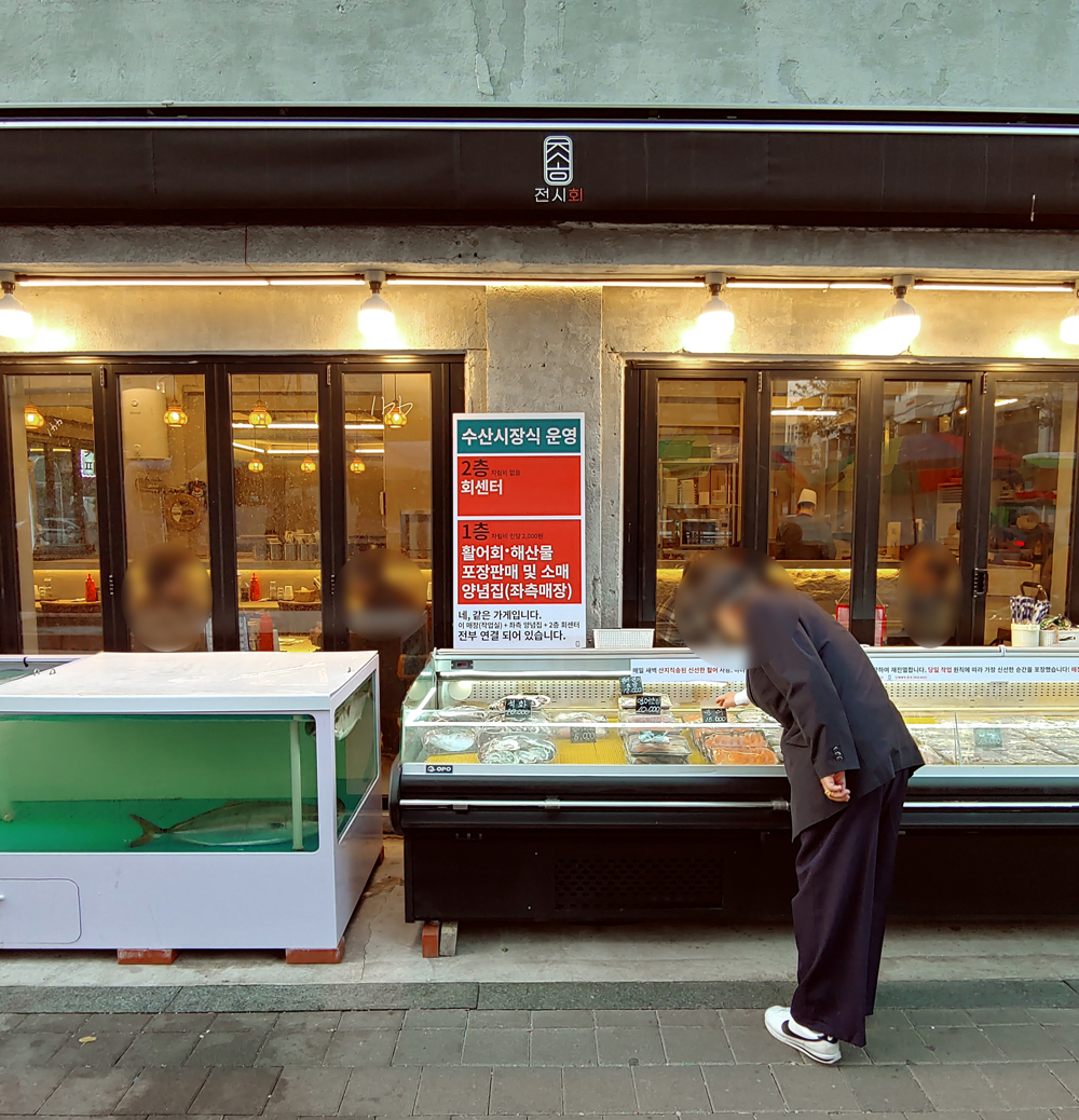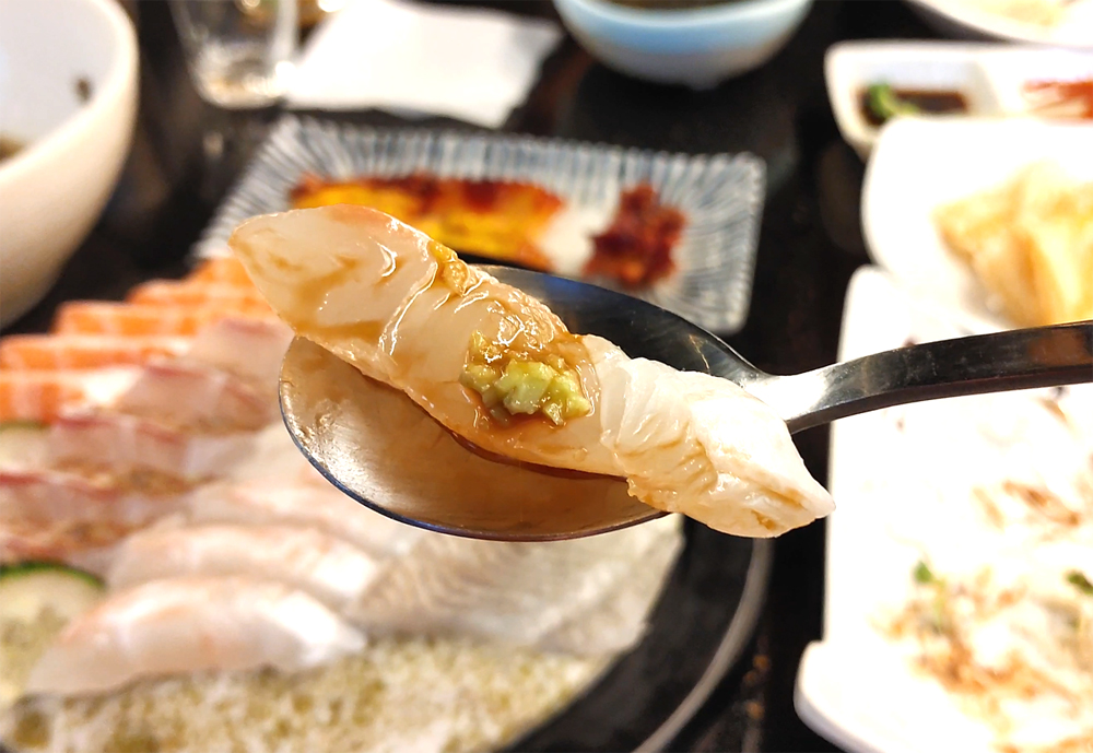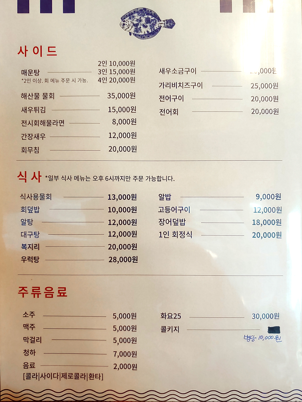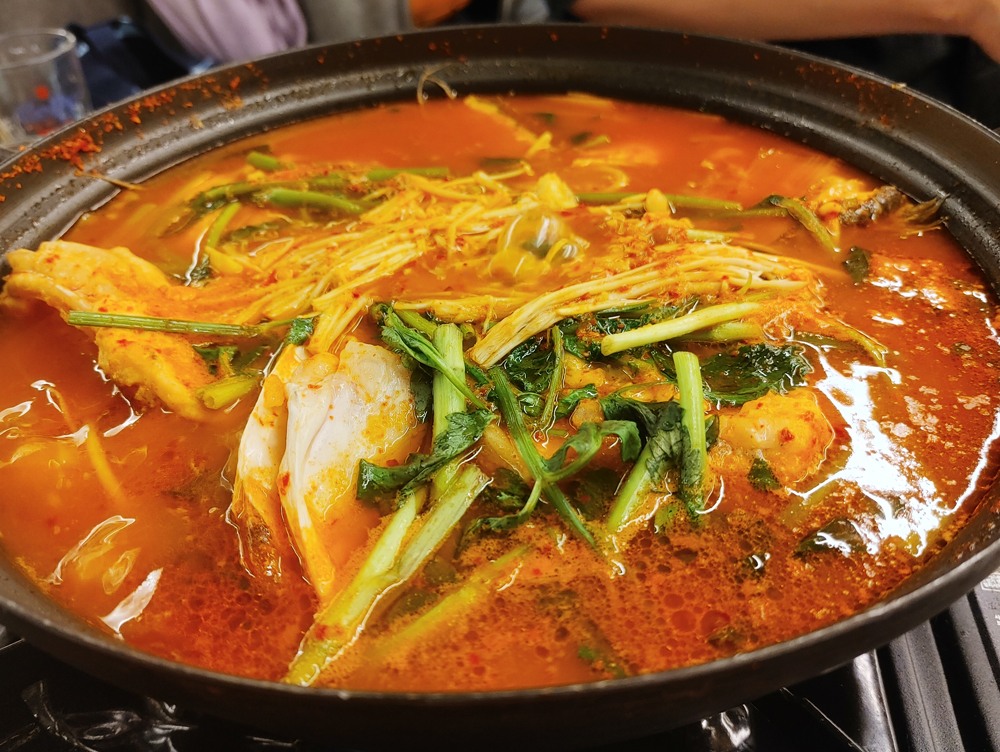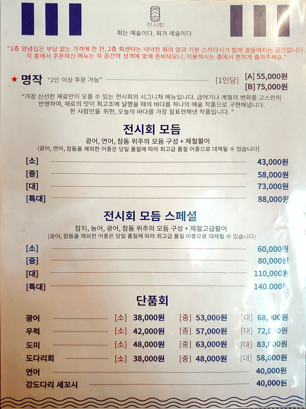 경동시장 횟집 전시회 제기본점의 모듬회와 매운탕
