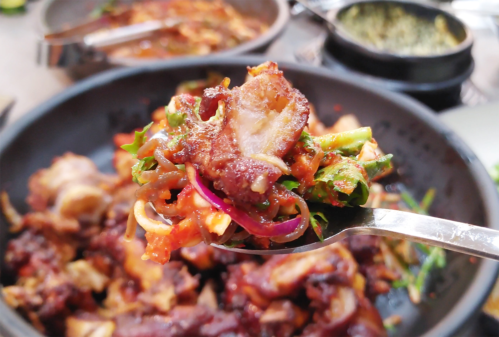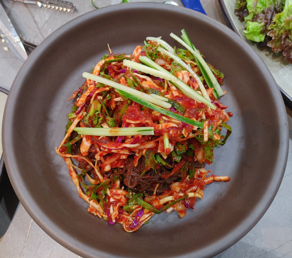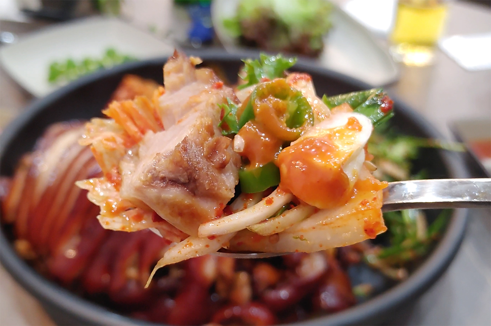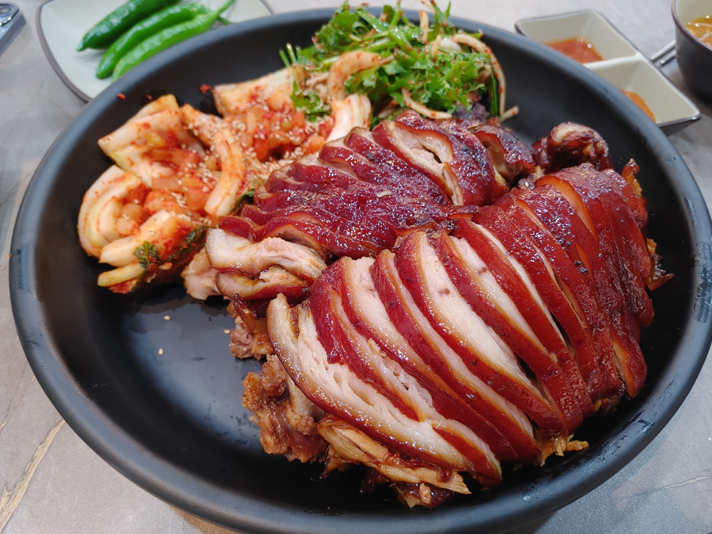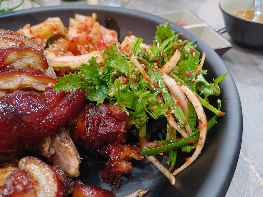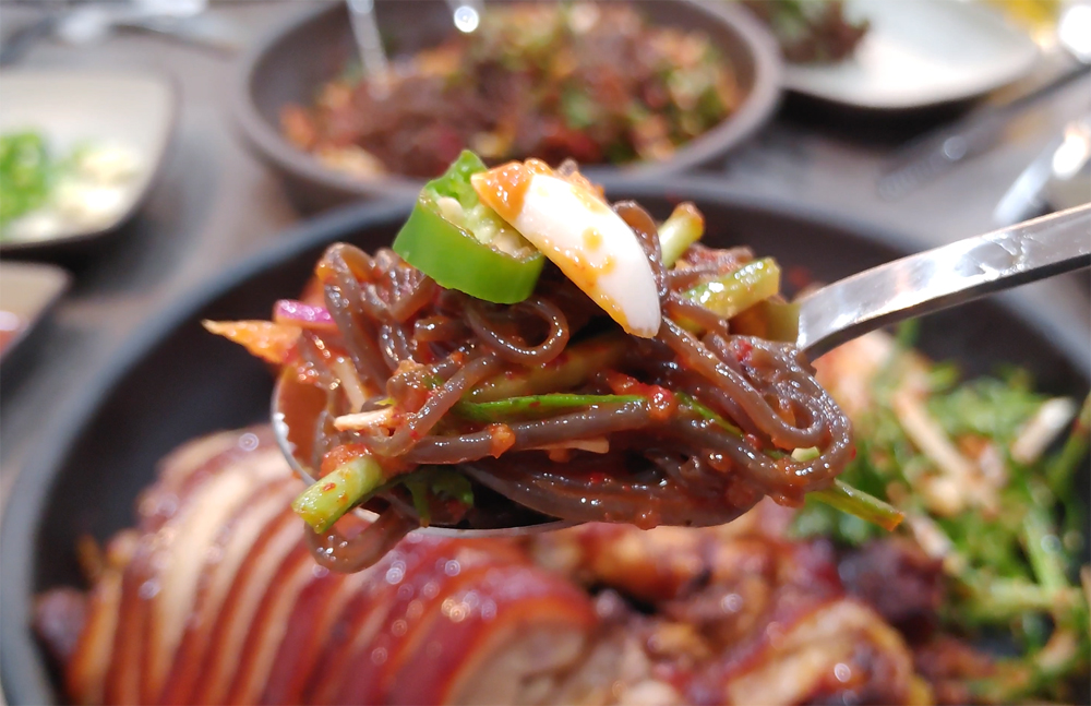 담백하고 부드럽고 쫀쫀한 족발과 쫄깃하고 상큼 매콤한 쟁반국수와의 조화가 아주 맛있습니다.