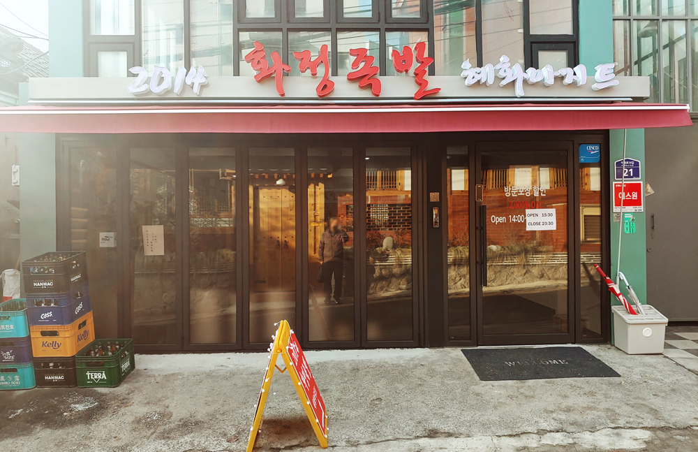혜화역 1번 출구에서 찾아가는 혜화동 골목길에 자리한 2014 화정족발 혜화아지트입니다.