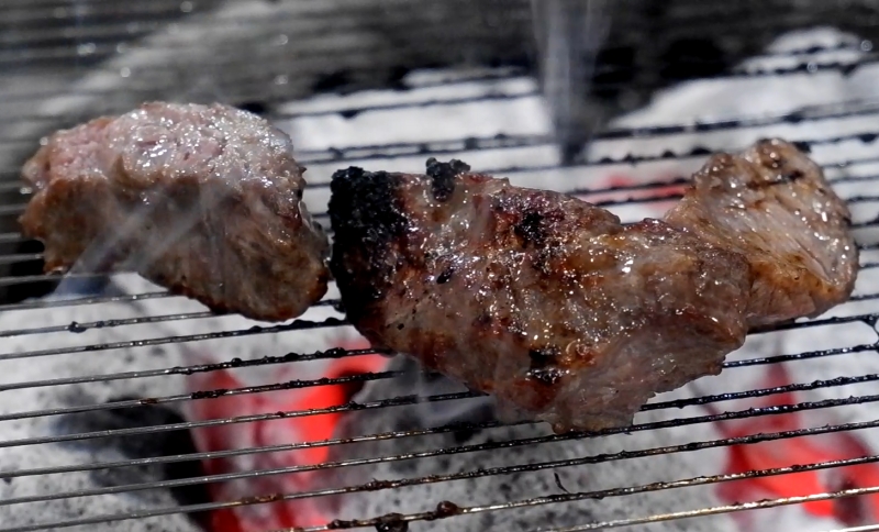 숯불의 열이 그대로 고기에 닿겠습니다.